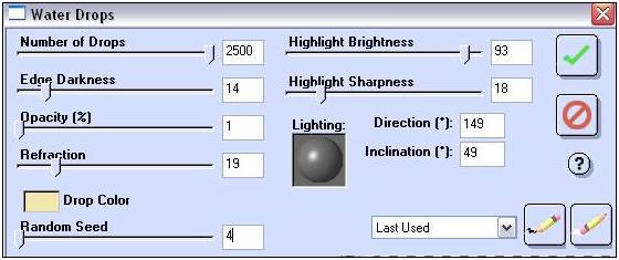 20 - Activer le calque C2 Effets/Eye Candy 3/ Water Drops avec ces réglages : Random Seed à 8