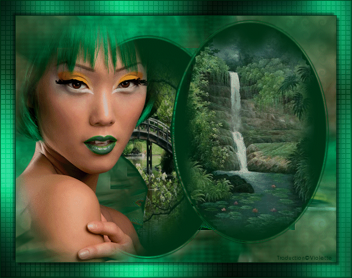 29 - Effets/Effets 3D/Ombre Portée : 5/5/50/5/noir Répéter avec des valeurs négatives : -5 en décalage vertical et horizontal 30 - Image/Ajouter des bordures : 1 pixel couleur #003014