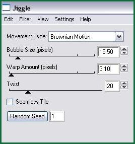 37 - Retourner dans votre PSP 38 - Revenir en arrière deux fois 39 - Effets/Eye Candy 4000/ Jiggle clic sur Random Seed Sélection/Désélectionner 40 - Edition/Copier