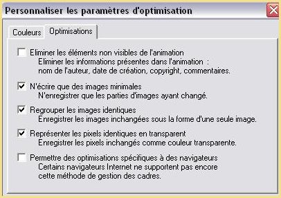 26 - Animation/Propriétés de l'image/Durée de l'affichage : 25 27 - Affichage/Animation pour contrôler si l'animation vous convient 28 - Affichage/Animation pour la stopper 29 - Fichier/Assistant d'Optimisation