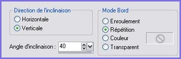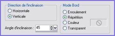 5 - Effets/Effets d'image/Mosaïque sans jointure réglages par défaut 6 - Réglages/Flou/Flou Directionnel : angle : 315/ Intensité : 100