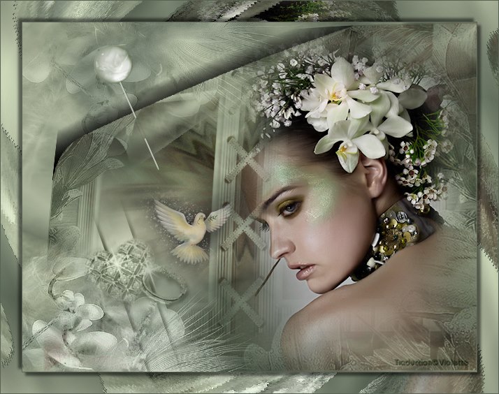 23 - Activer le tube "dove1-lizztish . pspimage" Edition/Copier/Édition/Coller comme nouveau calque Image/Redimensionner à 55%/décocher " tous les calques" Placer au dessus de la bague Opacité à 65%