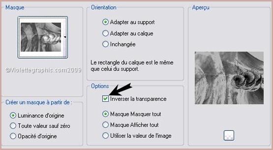 4 - Calques/Nouveau calque /Remplir de couleur #76594f Calques/Charger/Enregistrer un masque/Charger à partir du disque Choisir le masque 06_sharev