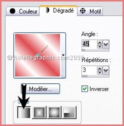 2 - Placer en avant-plan la couleur # ffffff et en arrière-plan la couleur #dd4b4f Configurer un dégradé linéaire angle: 45°/Répétitions: 3/Inverser coché