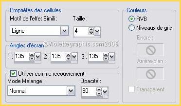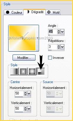 2 - Placer en avant-plan la couleur #f9f9fb et en arrière-plan la couleur #ffcc0f Configurer un dégradé radial angle: 45°/Répétitions : 3