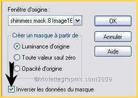 21 - Activer le masque " shimmers mask 8 .jpg" Calques/Nouveau calque de masque/à partir d'une image/Ajout d'un masque à partir d'une image sélectionner le masque "shimmers mask 8 .jpg" cocher luminance d'origine /cocher inverser les données du masque