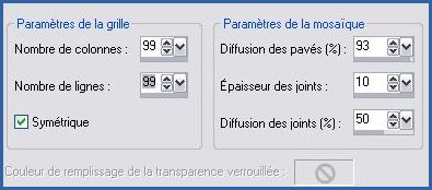 9 - Calques/Nouveau calque Remplir de dégradé 10 - Effets/Effets de Mosaïque Ancienne/ avec ces réglages :