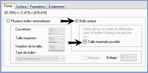 Calques/Supprimer/Calques/Fusionner le groupe 16 - Calques/NOUVEAU CALQUE 17 - Effets/Effets Artistiques/Bulles 18 - Onglet Forme