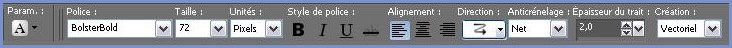 39 - Activer l'outil Texte / Police BolsterBold/taille : 72/ Epaisseur du trait : 2 couleur avant-plan #ffffff / arrière-plan fermé
