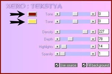 21 - Calques/NOUVEAU CALQUE 22 - Sélection/Charger/Enregistrer une sélection/charger à partir du disque/Charger la sélection @nn_sel002_africa' 23 - Remplir de couleur #ffe75a 24 - Placer le mode de calque sur Multiplier25 - Ouvrir le tube lion king.pspimage 26 - Calques/Charger/Enregistrer un masque/Charger à partir du disque/Choisir le masque 20/2027 - Calques/Supprimer/Calques/Fusionner le groupe 28 - Edition/Copier 29 - Edition/Coller comme nouveau calque Placer comme sur l'image finale 30 - Placer le mode de calque sur Ecran 31 - Calques/Dupliquer 32 - Placer le mode de calque sur Lumière Dure33 - Calques/Fusionner les calques visibles 34 - Effets/Xero/Teskya avec ces réglages