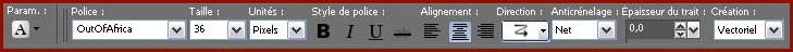 38 - Activer l'outil Texte/Police Outofafrica/taille : 36 /avant-plan fermé /couleur arrière-plan #400000