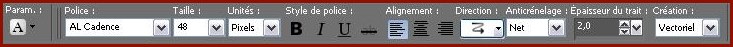 41 - Activer l'outil Texte/Police Al Cadence/taille : 48 /avant-plan fermé /couleur arrière-plan #ffe75a