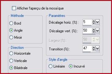 9 - Effets/Effets d'image/Mosaïque sans jointure avec ces réglages: