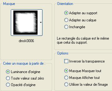 4 - Ouvrir une nouvelle image de 640 x 480 transparent Remplir de blanc 5 – Calques/Nouveau calque/remplir de couleur #a7a6a4 6- Calques/Nouveau calque de masque/configurer ainsi :