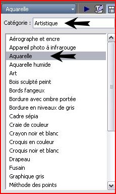 script : 6 - Catégorie Artistique /sélectionner le script Aquarelle/clic sur la flèche bleue