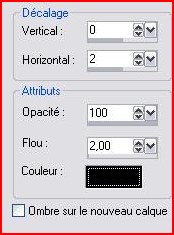 30 - Sélectionner la bordure verte avec la baguette magique ( Tolérance et Progressivité à 0 ) 31 - Sélection/Inverser 32 - Sélection/Transformer la sélection en calque 33 - Sélection/Désélectionner 34 - Activer le calque du fond 35 - Effets/Pentacom/Drag: 50 36 - Activer le calque supérieur : Effets/Effets 3D/Ombre Portée : 0/2/100/20/noir 37 - Ouvrir le tube text38 - Edition/Copier 39 - Revenir sur votre travail 40 - Edition/Coller comme nouveau calque 41 - Image/Ajouter des bordures : 2 pixels couleur #800000 42 - Exporter en JPEG Optimisé Une autre version: