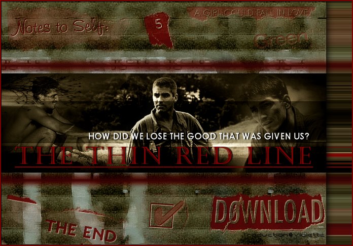 Entrer le texte : The Thin Red Line ou un texte de votre choix 26 - Calques /Convertir en calque raster 27 - Effets/Effets 3D/Ombre Portée : 0/2/100/2/noir