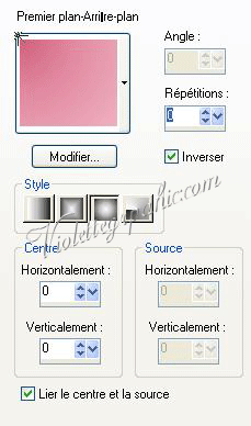 2 – Ouvrir la plaquette E-2-129-ashleyjudd 3 - Mettre en avant-plan la couleur #efb1c1 et en arrière-plan la couleur blanche #d1617d et faire un dégradé halo avant-plan/arrière-plan angle 0° répétition 0 case inverser cochée :