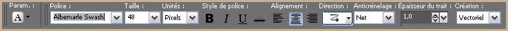 23 - Activer l'outil Texte/Police Albemarle Swash/ Taille : 48 24 - avant-plan fermé/arrière-plan couleur #dbc7ad