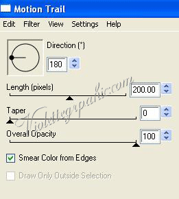 7 – Sélection/transformer en calque/Désélectionner 8 – Effets/Effets 3D/Ombre Portée : 0/0/100/15/noir/refaire une seconde fois Mode de calque/Recouvrement/Dupliquer/Mode Luminance 9 - Activer le tube cup of wine/Edition/Copier/ Edition/Coller comme nouveau calque/Placer au coin supérieur droit/Dupliquer deux fois 10 – Activer la couche inférieure de la tasse Effets/Eye Candy 400/Motion Trail: