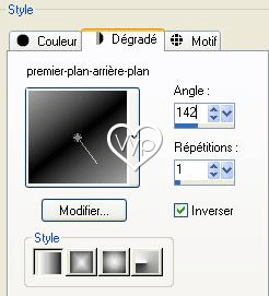 7 – Avec la baguette magique/tolérance et progressivité 0 /mode ajouter/sélectionner les deux bordures 8 - Calques/nouveau calque 9 - couleur noire en avant-plan et couleur #a4a4a4 en arrière-plan faire un dégradé linéaire