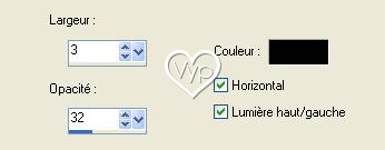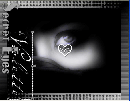 Ecrire le texte « Secret Eyes » Image/ rotation droite 90° Effets/Effets 3D/Ombre Portée :