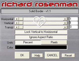 26 - Effets/Richard Rosenman/Solide Border : comme au n°8 Avant-plan couleur noire 27 – Effets/Xero/Soft Vignette par défaut 28 - Exporter en JPEG Optimisé