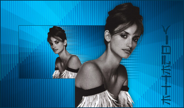 12- Effets/Two Moon/VenetianBlur par défaut. 13 –Effets /Effets de distortion/vent : vers la droite/100. Dans la palette des calques/passer en mode luminance :opacité à 70%. 14 – Ouvrir le calque 4 .Fusionner les calques visibles. 15- Sélection/sélectionner tout/Sélection/modifier/contracter de 2/inverser remplir de la couleur foncée du dégradé. Désélectionner.