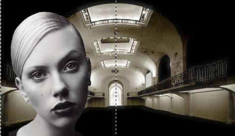 4 - Activer le tube Scarlett/Redimensionner à 320 pixels de hauteur Edition/Copier/Edition/Coller comme nouveau calque sur le tableau. Déplacer à gauche. Dupliquer. Occulter la copie.