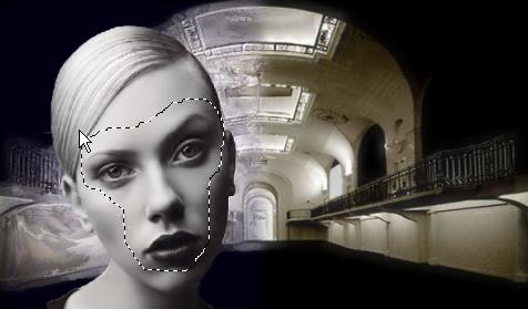 8 – Ouvrir la copie du tube visage et à l’aide du lasso sélectionner une partie du visage :