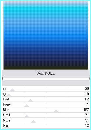 pâles *** 1 - Ouvrir une image de 500 x 400 pixels Remplir avec le gradient 2 - Effets/Unlimited /Andrew's Filter 57 - Dotty Dotty avec ces réglages :
