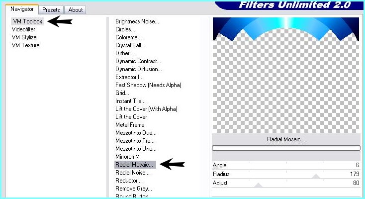 7 - Effets/Filtre VM Toolbox /Radial Mosaic avec ces réglages :