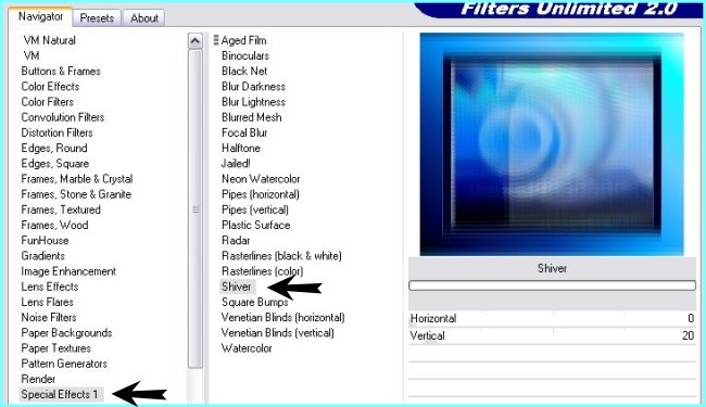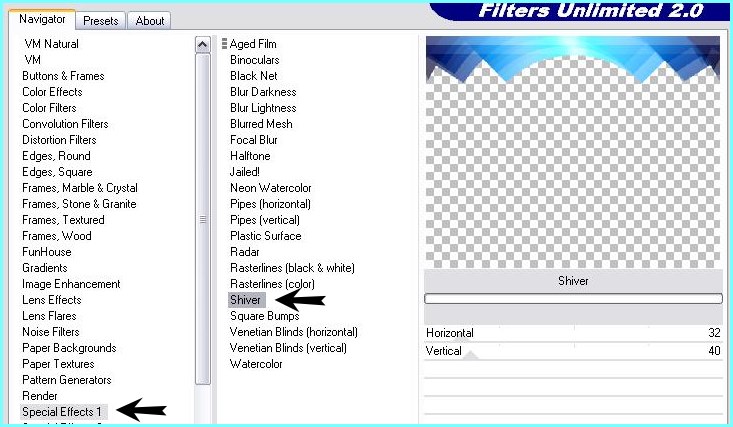8 - Effets/Unlimited /Special effects 1/ shiver avec ces réglages :