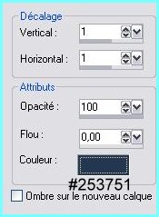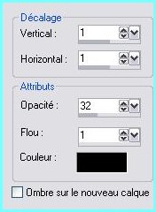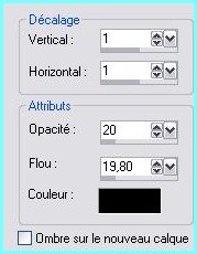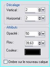 42 - Opacité : 40 43 - Effets/Effets 3D/Ombre Portée :