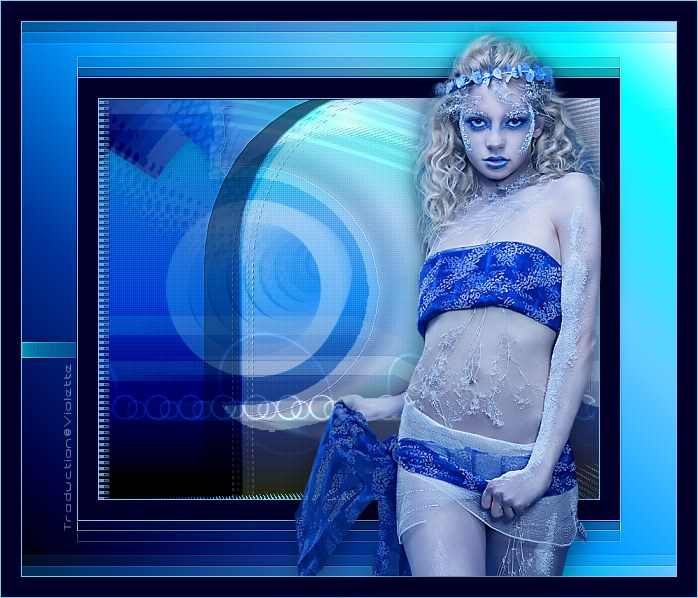 62 - Image/Ajouter des bordures : 1 pixel couleur #7BCEF5 63 - Image/Ajouter des bordures : 20 pixels couleur #000029 64 - Image/Ajouter des bordures : 1 pixel couleur #7BCEF5 65 - Placer le dégradé Multi-blauw en avant-plan
