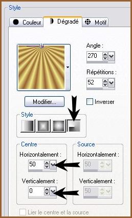 8 - Configurer un dégradé linéaire: angle: 90/ répétition :0