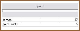 11 - Remplir la sélection avec le gradient 12 - Sélections/Désélectionner 13 - Effets/Pentacom/jeans réglages ci-dessous: