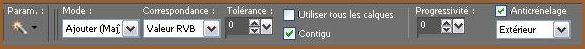 ------------------------------------------------------------------------------------------------------------------------------------------ Sur les deux petites images: 33 - Image/Ajouter des bordures : 5 pixels couleur #986132 34 - Activer la baguette magique configurée ainsi: Ajouter/Extérieur