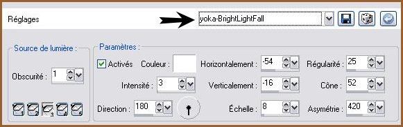 51 - Sélections/Désélectionner 52 - Calques/Fusionner les calques visibles 53 - Effets/Effets d'éclairage/projecteurs: Appliquer le preset yoka-BrightLightFall