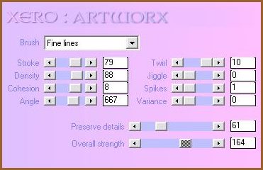 C - Réglages/Flou/Flou gaussien : rayon : 9 D - Effets/Xero/Artworx avec ces réglages: