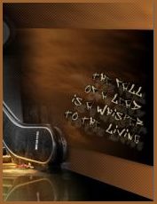 67 - Votre touche Maj enfoncée Entrer le texte suivant : The Fall of a lead is a whisper to the living ou un texte de votre choix qui ressemble à des graffitis Calques /Convertir en calque raster 68 - Effets/Effets 3D/Ombre Portée :