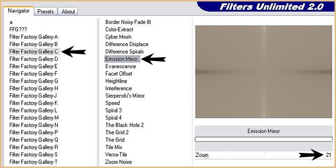 4 - Effets/Filtre Unlimited / FF Gallery-C/ Emission Mirror avec ces réglages:
