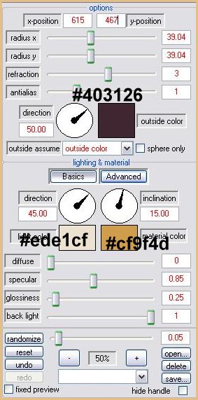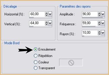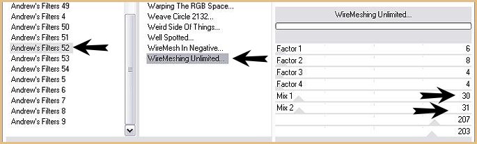 Si vous utilisez des couleurs différentes il faut adapter vos réglages 7 - Effets/Filtre Andrew's Filter 52/Wiremeshing Unlimited avec ces réglages :