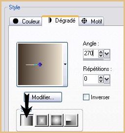 8 - Placer le dégradé en arrière-planConfigurer en avant-plan un dégradé linéaire angle: 270°/Répétition: 0