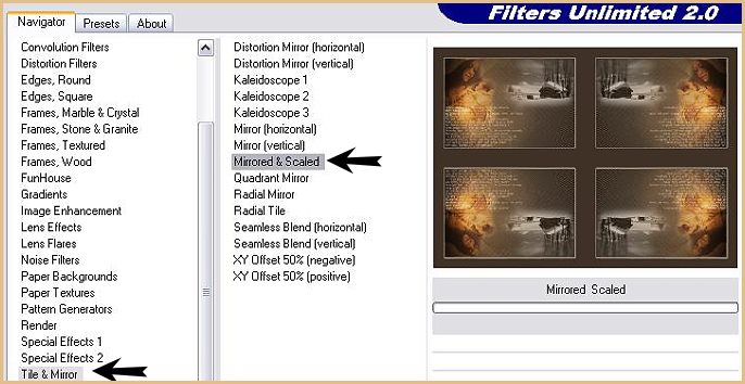 43 - Sélectionner de nouveau la bordure de 55 pixels 44 - Effets/Unlimited/Tile & Mirror/ Mirrored & Scaled :