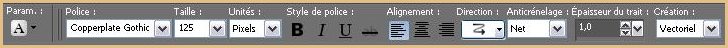 63 - Activer de nouveau l'outil Texte/Police Copperplate Gothic/taille de votre choix