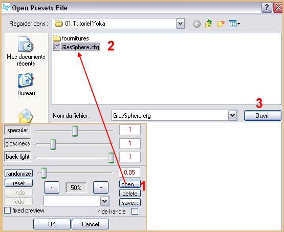 clic sur Open et aller rechercher votre preset dans le dossier où vous l'avez rangé /clic sur Ouvrir 70 - si vous ne pouvez appliquer les presets /appliquer le réglage par défaut ![]() et faire vos réglages : Première boule