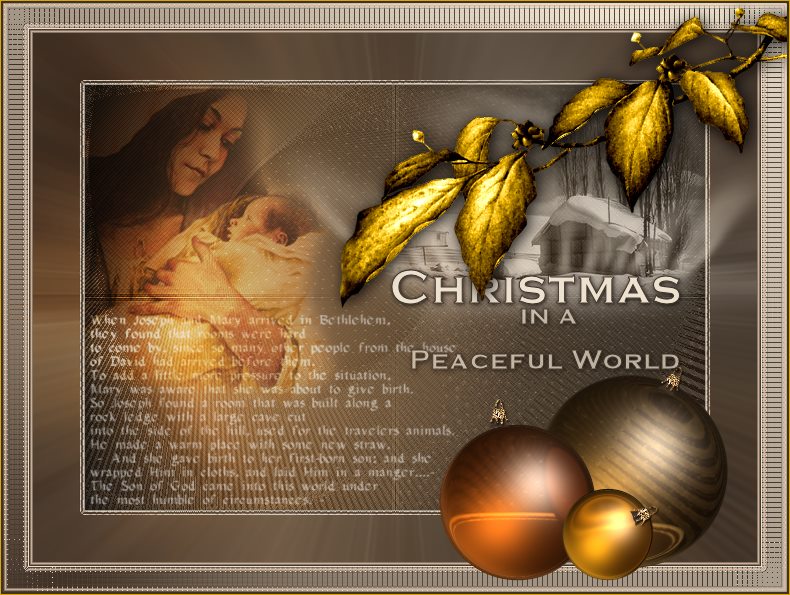 64 - Entrer le texte : in a Peacefull World ou un texte de votre choix 65 - Calques /Convertir en calque raster Placer ainsi: