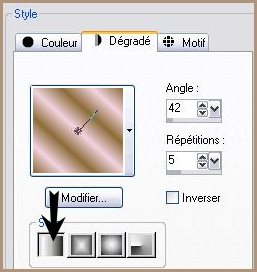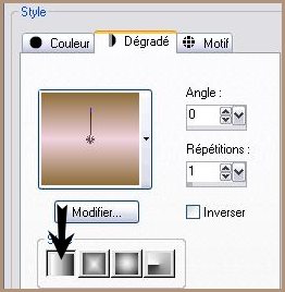 *** 1 - Ouvrir une image de 550 x 450 pixels Remplir du gradient "Soul059" ( ou un dégradé de votre choix ) configuré ainsi: