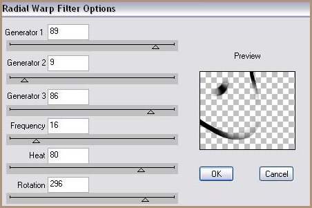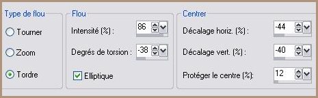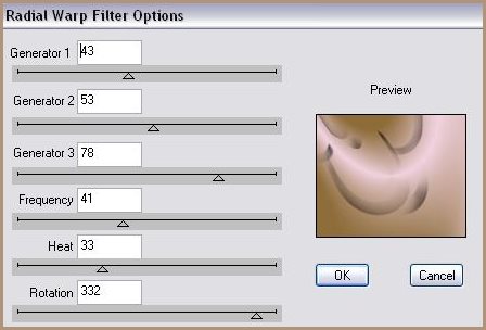 6 - Effets/Effets d'image/Mosaïque sans jointure réglages par défaut Calques/Fusionner les calques visibles 7 - Effets/DSB Flux/Radial Warp avec les réglages ci-dessous: